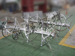 GLD攪拌器應用於高粘度(超過100,000cp)的流體攪拌中,有較好的傳熱和表面新效果。其結構形式有單螺帶和雙螺帶二種。不同數量的翼片,不同螺距以及不同形式的螺帶可以根據不同的攪拌要求而特殊制作。