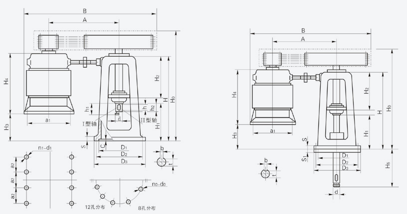 注:本系列減速機配用電機根據上海電機廠樣本編制,若選用其他電機廠産品,電機尺寸須相應調整,(其中YJL1410爲湘潭電機廠型号,其電機面安裝尺寸爲φ1150,12-φ28均布)。
