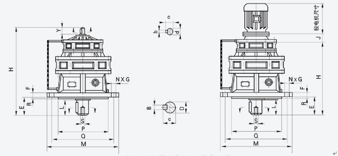 d、結構緊湊,體積小:與同功率的其它減速機相比,重量體積小1/3以上,由於是行星傳動,輸入軸和輸出軸在同一軸線上,以獲得盡可能小的尺寸。