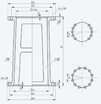 注:WJ型、DJ型、DXJ型-30A/B、35A、40B、45A四種機架底面爲Ⅰ型和Ⅱ型(Ⅰ型不須标柱,Ⅱ型須在型号後面注Ⅱ、Ⅱ型a°=30°,n2-φ爲12-14)其餘機架爲Ⅱ型(不須标注)